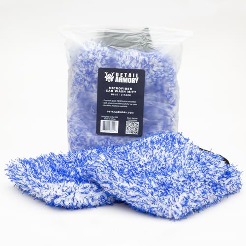 Specification: Microfiber Car Wash Mitt, Plush Cleaning Fibers, Scratch-Free, Swirl-Free, Lint-Free, 8in x 11in, Machine Washable, 2-Pack (Blue)