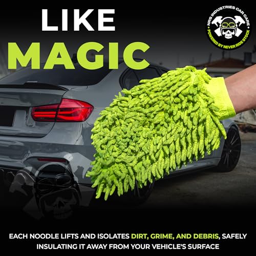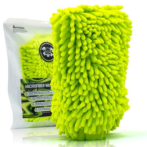 Microfiber Car Wash Mitt | Ultra-Soft Chenille | Car Wash Detailing | Dual Sided Sponge Glove | Scratch-Free | Auto Care Brush Mitt | Great for Cars, Trucks, Motorcycles & More
