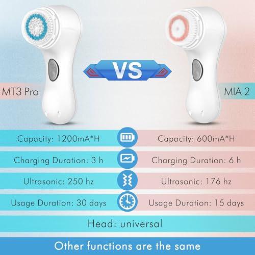 Specification: Microtree Electric Facial Cleansing Brush, Ultrasonic Vibrating Face Brush, 2 Speeds for Gentle Clean, Rechargeable Face Scrubber Exfoliator Waterproof Sonic Face Brushes for Cleansing