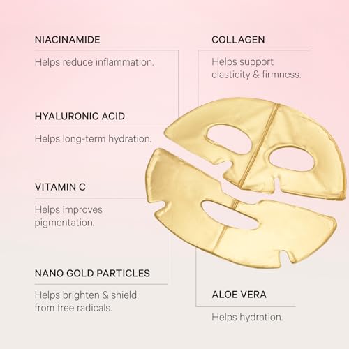 MZ SKIN Hydra-Lift Gold Face Mask – Niacinamide-Enhanced Hydrogel Treatment for Brightening Radiance, Restoring & Firmness, With Gold Nano Particles, Hyaluronic Acid, Vitamin C & Collagen