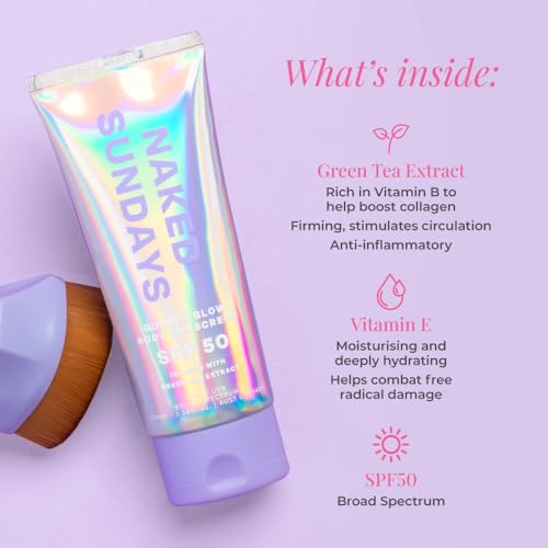 Specification: Naked Sundays SPF50 Golden Glow Body Sunscreen – Broad Spectrum UVA/UVB Protection, Glowy & Shimmering, Fragrance-Free, Firming, Non-Transfer SPF Lotion – 100ml