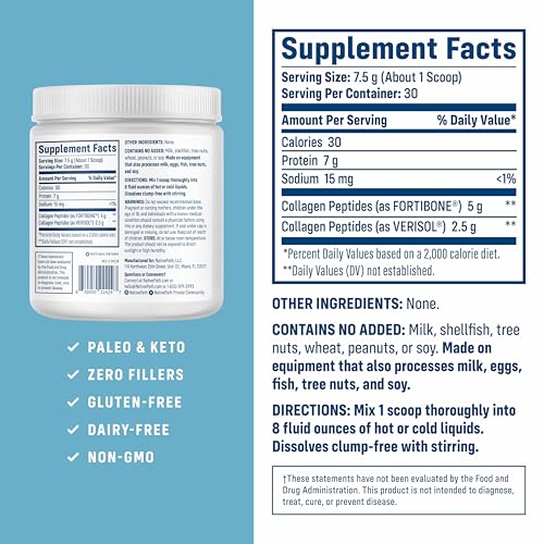 Specification: NativePath Bone Health Collagen Peptides, Type 1 & 3, with Fortibone and Verisol, 7.9 Ounce, 30 Servings