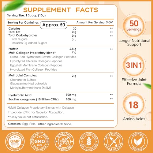 Specification: NATURE TARGET Multi-Collagen-Peptides-Powder for Joint Support, Hydrolyzed Collagen for Women Men with MSM + GC, Type I II III V X Collagen for Skin Hair & Nail, Non-GMO, 50 Servings