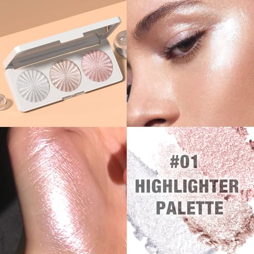 Specification: Pearl White Ice Silver Champagne Gold Rose Pink Shimmer Glitter Highlighter Highlight Makeup Contour Powder,Glitter Face Illuminator Highlighter, Illuminator Make Up (Lunar Glow Trio)