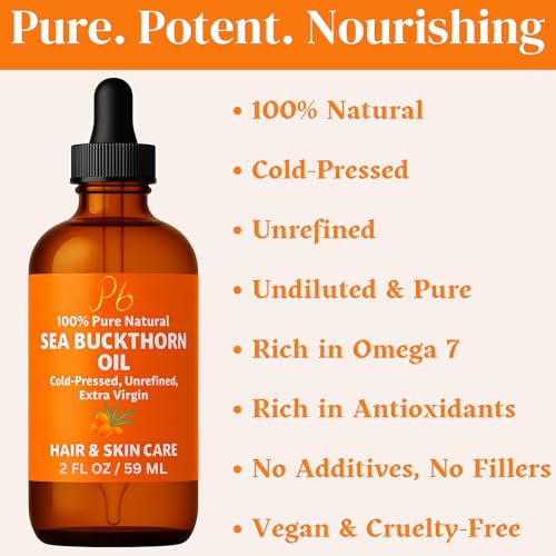Specification: Sea Buckthorn Oil – 100% Pure Cold-Pressed from Fruit & Seed – Sea Buckthorn Seed Oil for Face, Hair, Skin & Nails – Supports Radiant, Youthful-Looking Skin – Amber Glass Bottle 2 fl oz