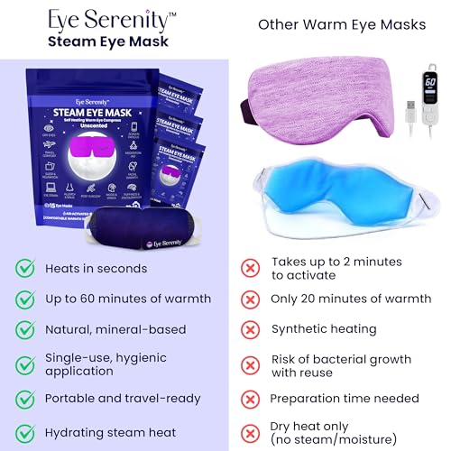 Specification: Self Heating Warm Compress for Dry Eyes, Steam Eye Mask I Heated Fast Relief for Stye, Puffy Sensitive Eyes – Long Lasting Moist Heat for Sleep, 15 Pack