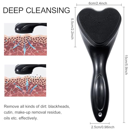 Specification: Silicone Face Scrubber Exfoliating Brush, Beomeen 2 Pack Manual Handheld Facial Cleansing Brush Blackhead Scrubber, Soft Bristles Waterproof for Face Skincare (Black,Heart)