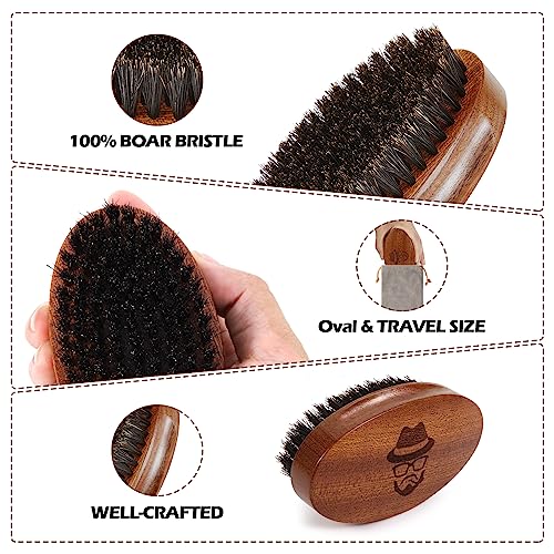 Sosoon Beard Brush for Men, 100% Pure Boar Bristle Beard Brush, Beard Grooming Set Including Beard Comb, 2 Pcs Mustache Scissors, and Travel Bag
