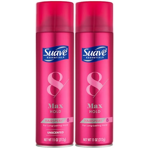 Suave Max Hold Hairspray 8 is the ultimate aerosol hairspray for long-lasting hold, style, and flexibility. Our variety 2-pack includes one unscented and one scented formula, both infused with replenishing Vitamin B5 and Vitamin E.