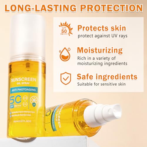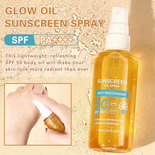 Specification: Sunscreen Oil Body Sunscreen Spray Spf 50 Hydration Glow Mist Lightweight Spf Body Oil,Refreshing Spray,Suitable for All Skin Types