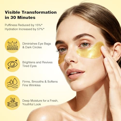 Under Eye Patches 60PCS, 24K Gold Collagen Eye Mask for Puffy Eyes & Dark Circles, Hydrating Eye Pads with Hyaluronic Acid, Vitamin C & Castor Oil, Anti-Aging Under Eye Treatment to Smooth Fine Lines