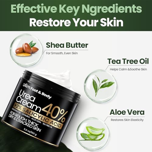 Urea Cream 40 Percent for Feet – Foot Cream for Dry Cracked Heels, 2% Salicylic Acid for Callus Remover, Maximum Strength Repair Skin, Soft & Smooth 40% Urea Lotion Moisturizer Elbows Hands Knees