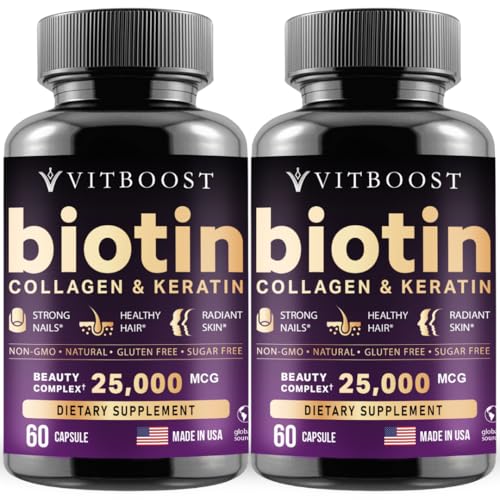 Specification: Vitboost Biotin with Hyaluronic Acid, Collagen and Keratin – 25000 mcg Hair Growth Vitamins for Men and Women – Nails and Skin, USA Made – Third Party Tested, B1, B2, B3, B6, B7 Complex – 120 Capsules