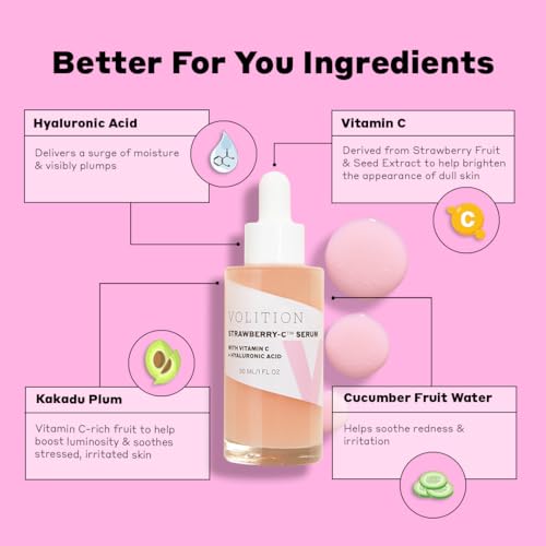 Specification: Volition Beauty Strawberry-C Brightening Serum with Vitamin C + Hyaluronic Acid | Soothes, Reduces Excess Oil, Improves Skin Luminosity & Smooths the Look of Wrinkles | Vegan