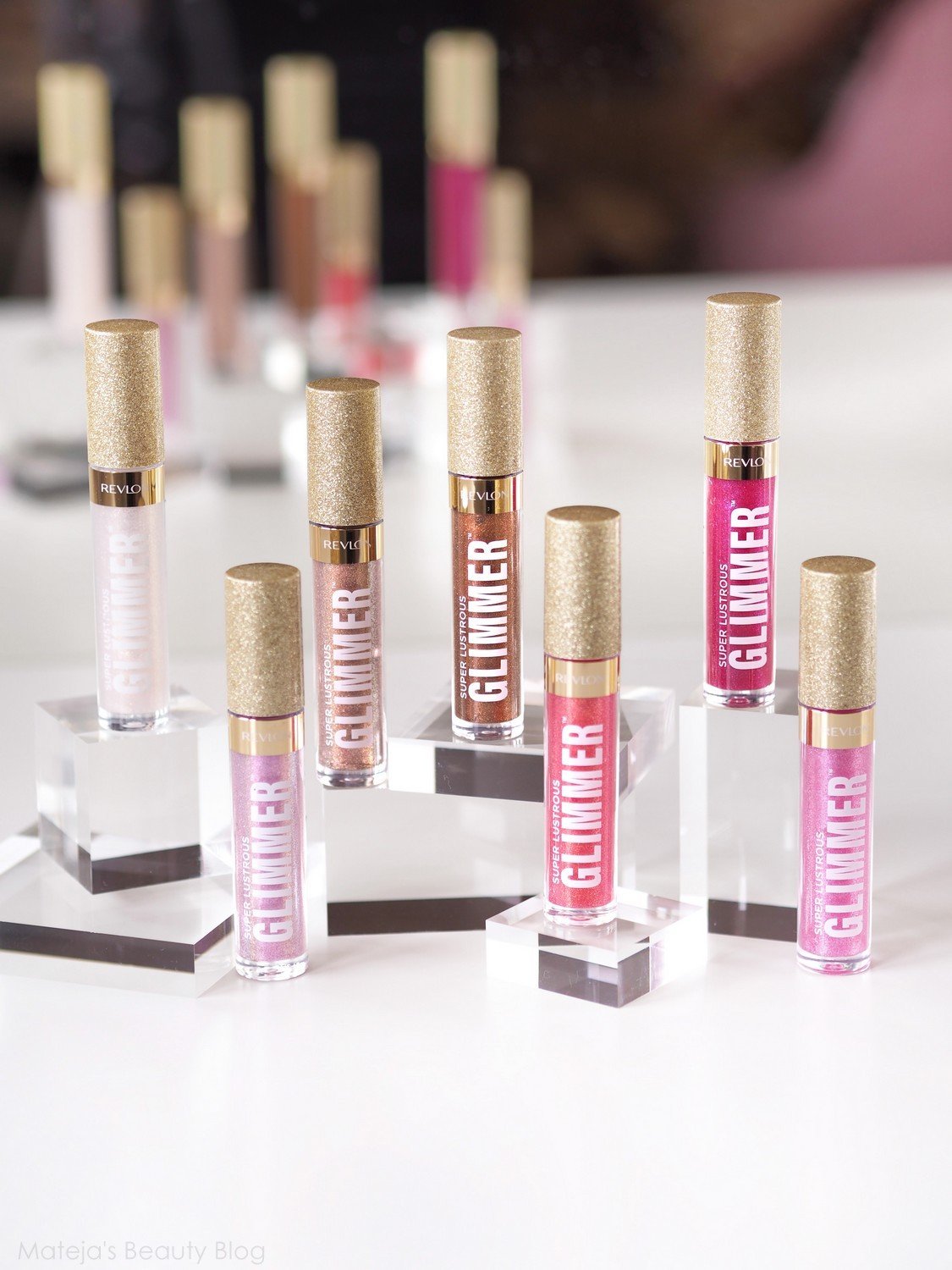 Revlon’s collection of lip glosses that contain plant-based glitter and light-reflecting pearls. There are 10 shades in total, I’m missing two, one of them is blue. They are mostly sheer, though some shades add a semi‐opaque level of colour. The intensity or amount of shimmer varies per shade and I find Happy Hour is the one true super shimmery one.